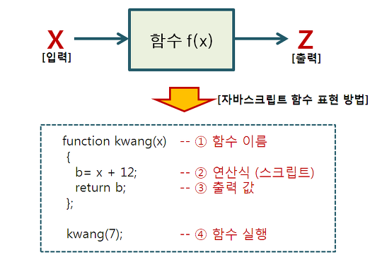 정의 : 일련의 과정을 문으로 구현하고 코드 블록으로 감싸서 하나의 실행단위로 정의한것이 함수다